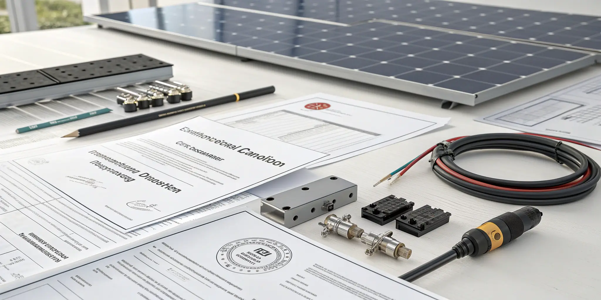 %[solar certification documents and connectors on desk, PV compliance paperwork and cables](https://rayenrg.com/wp-content/uploads/2026/02/connector-certification-1.webp solar certification)